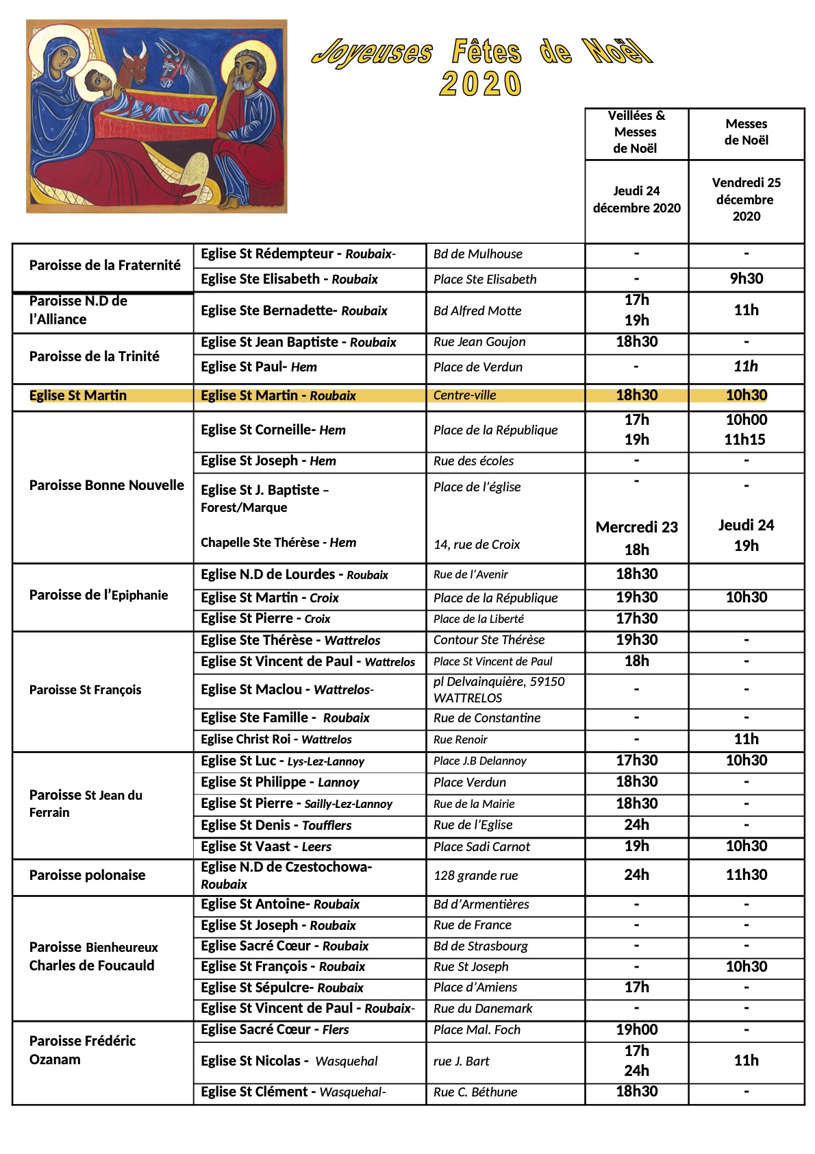 Horaires Noel 2020 Doyenné Près de chez vous copy